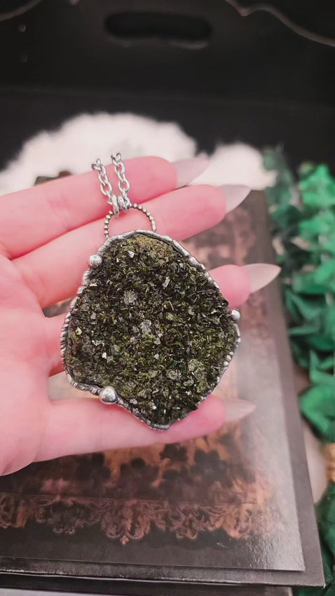 Fairy Forest Epidote Pendant! Epidote is known for Earth Connection: Helps you feel more in tune with nature and the Earth! Epidote symbolizes manifestation, karma, and personal growth.