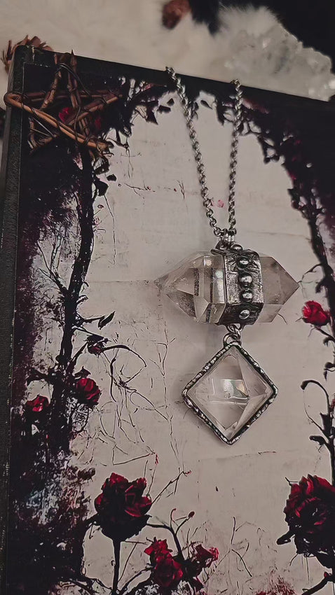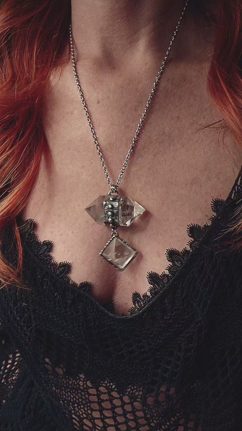 Quartz Pyramid Drop Pendant! I wanted to create a fun piece that moves so I attached the Pyramid so it would hang away from your chest and always have a little movement as you moved around, reflecting the light and throwing sparkles!